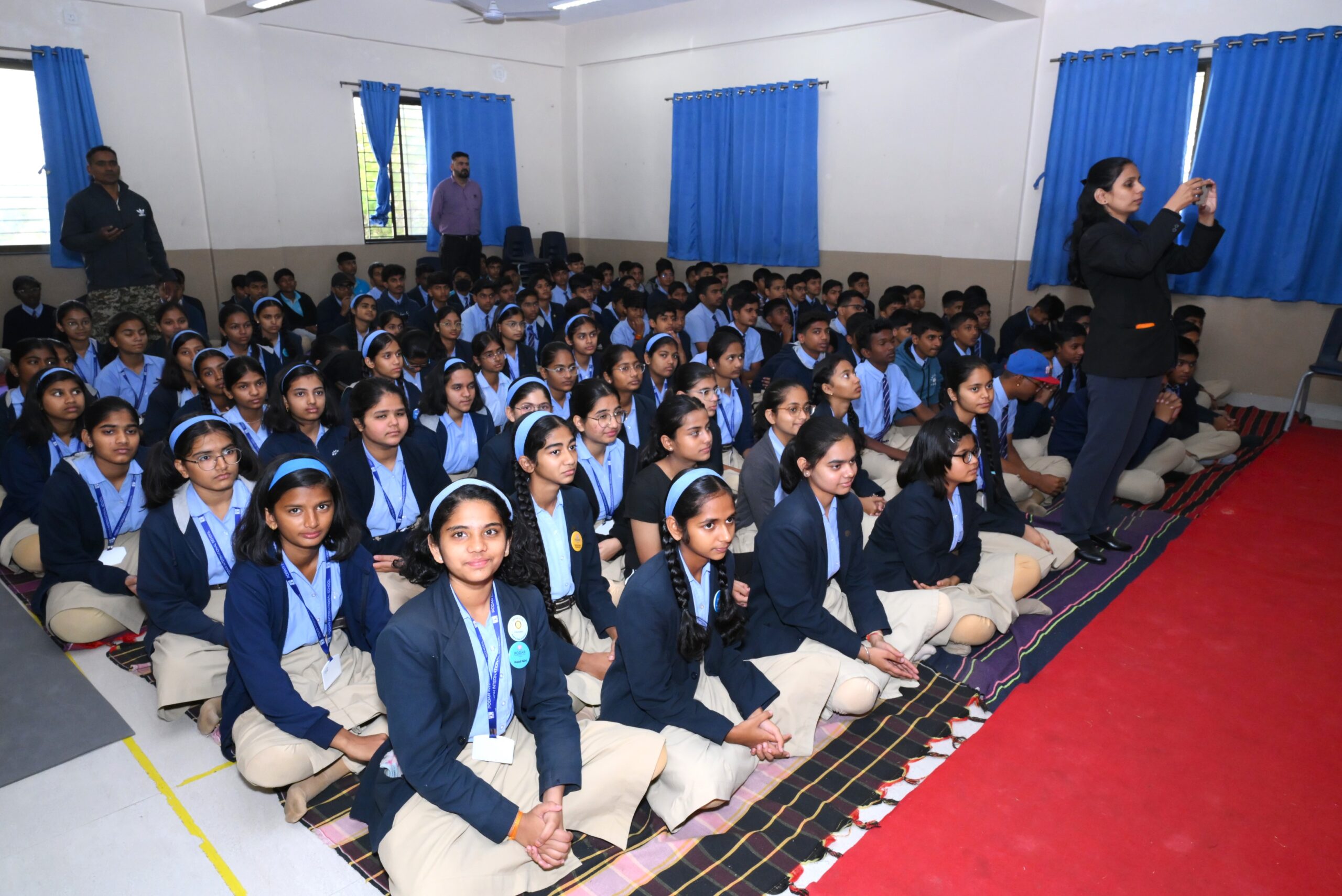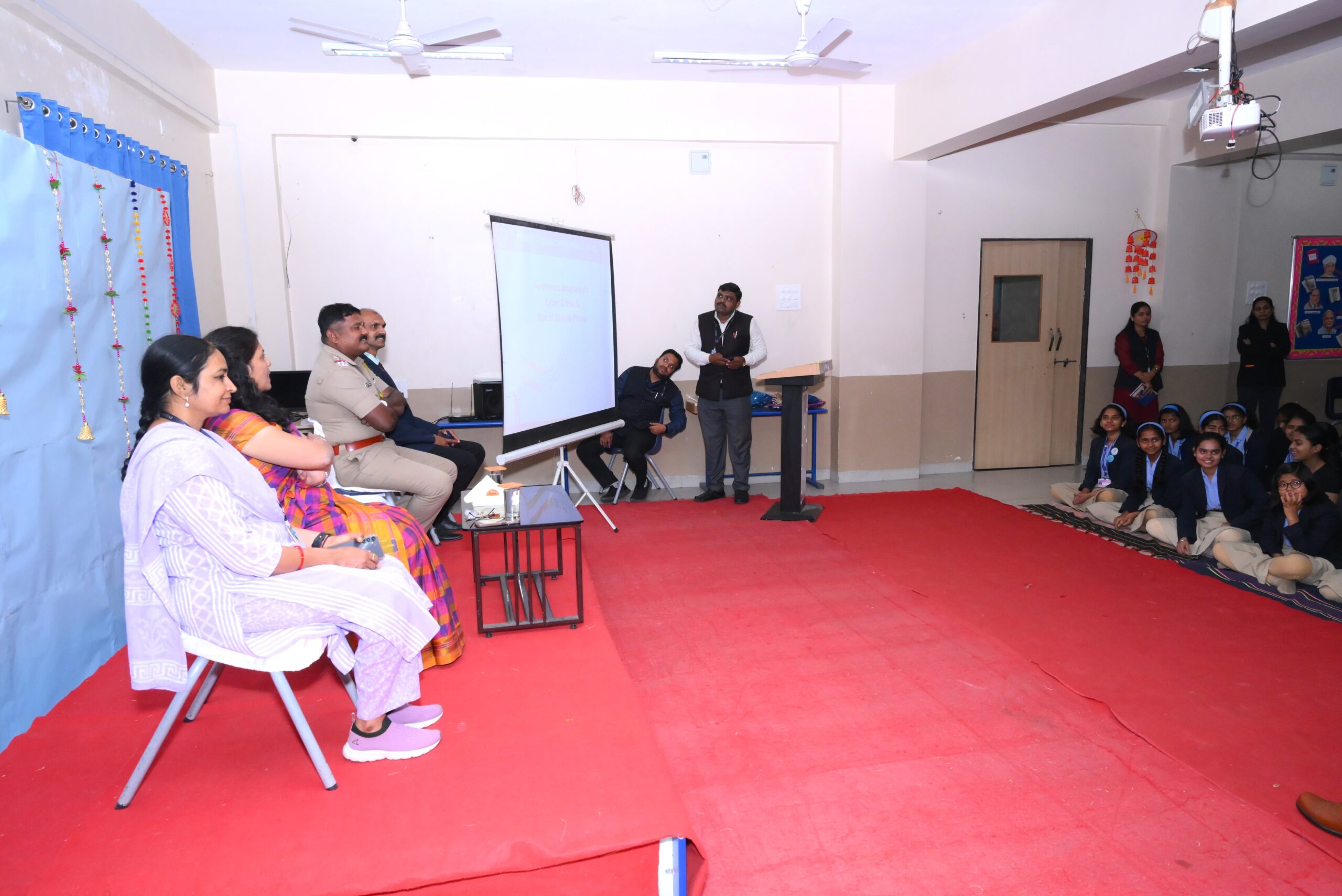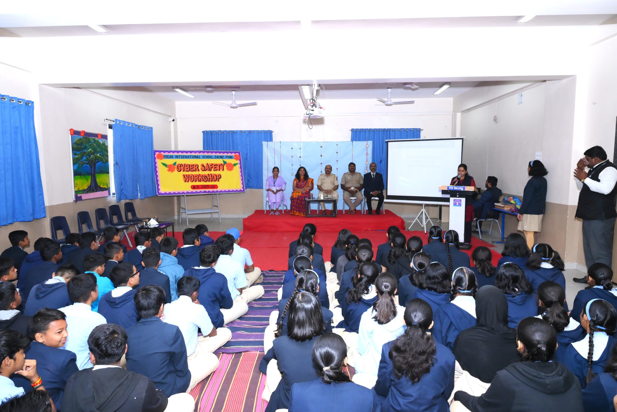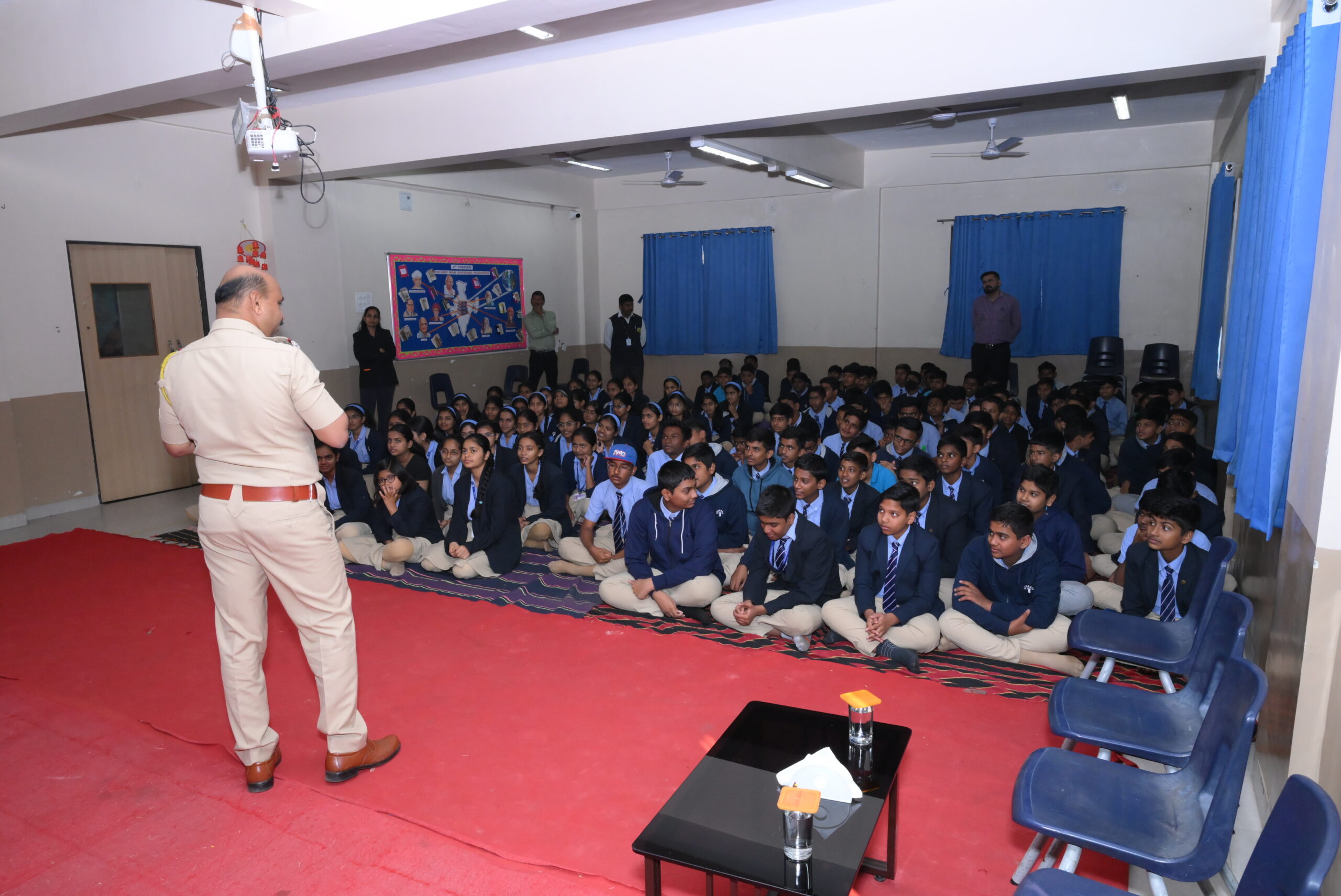 महाराष्ट्र पोलीस वर्धापन दिनानिमित्त पोद्दार इंटरनॅशनल स्कूल येथील विद्यार्थी व विद्यार्थिनींना सायबर क्राईम व मोबाईल वापरण्याचे फायदे व तोटे याबद्दल मार्गदर्शन करण्यात आले.