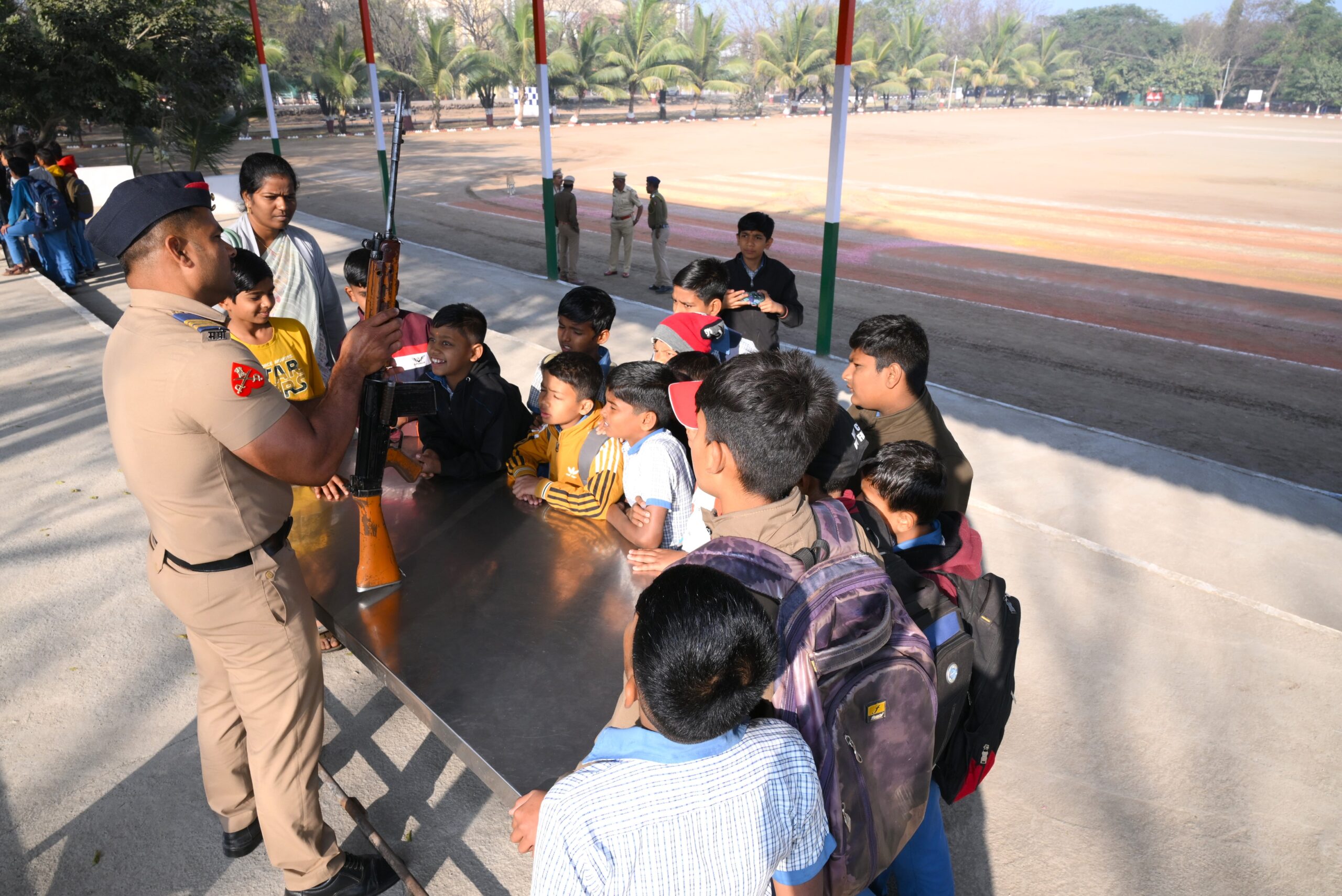 पोलीस प्रशिक्षण केंद्र नानवीज दौंड येथे २ जानेवारी महाराष्ट्र पोलीस वर्धापन दिनानिमित्त सप्ताहाच्या अनुषंगाने विविध कार्यक्रमाचे आयोजन करण्यात आले. मा. श्री. नंदकुमार ठाकूर,प्राचार्य तथा पोलीस अधीक्षक पोलीस प्रशिक्षण केंद्र नानवीज दौंड यांचे मार्गदर्शनाखाली दिनांक ०७/०१/२०२६ रोजी शाळेतील विद्यार्थी व विद्यार्थिनींना वेपन हँडलिंग व वेपन ची माहिती देण्यात आली.