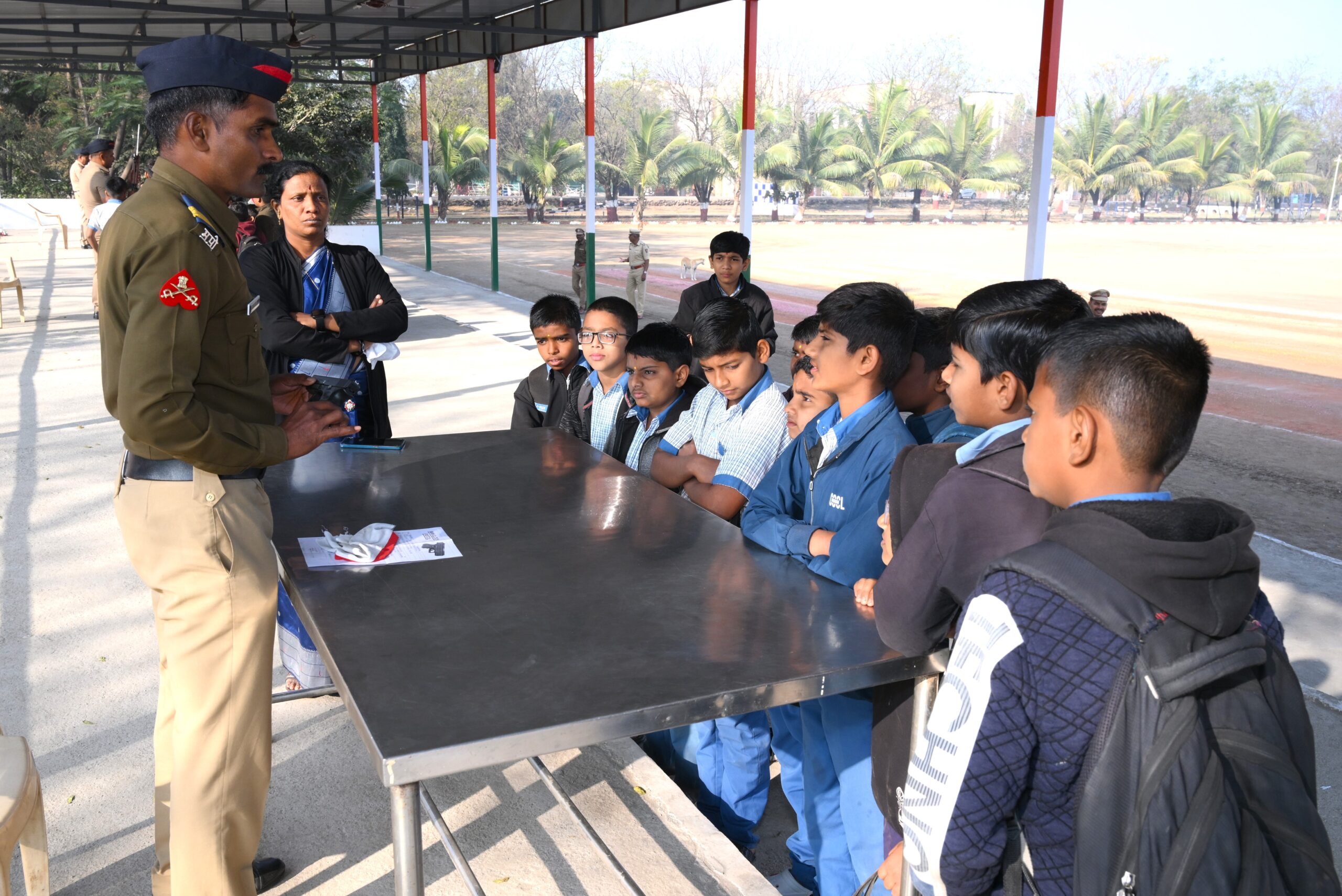 महाराष्ट्र पोलीस वर्धापन दिनानिमित्त नानवीज पोलिस ट्रेनिंग सेंटर येथे शाळेतील विद्यार्थी व विद्यार्थिनींना वेपन हँडलिंग व वेपन ची माहिती देण्यात आली.