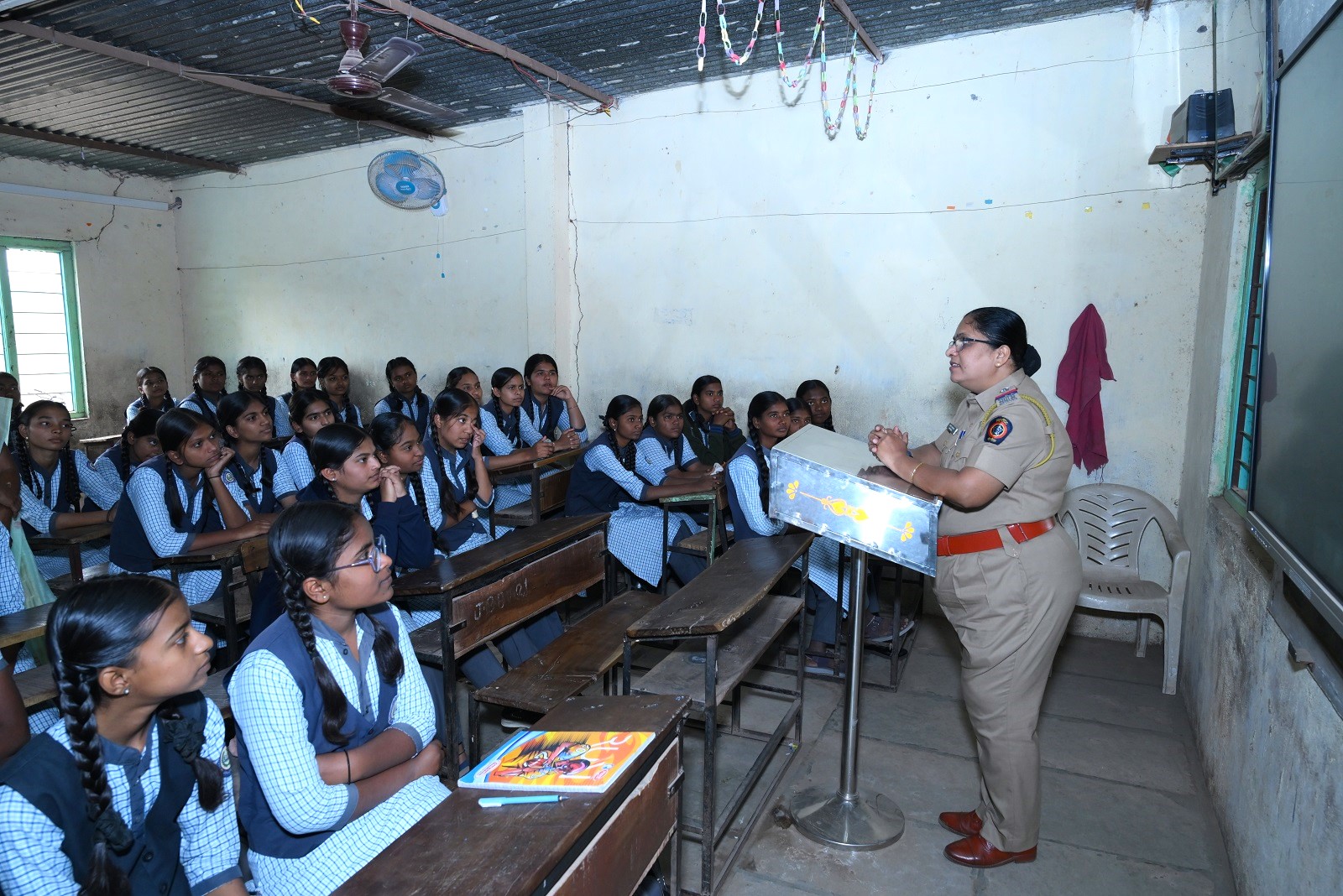 पोलीस प्रशिक्षण केंद्र नानवीज दौंड येथे 2 जानेवारी महाराष्ट्र पोलीस वर्धापन दिनानिमित्त सप्ताहाच्या अनुषंगाने विविध कार्यक्रमाचे आयोजन करण्यात आले. मा. श्री. नंदकुमार ठाकूर,प्राचार्य तथा पोलीस अधीक्षक पोलीस प्रशिक्षण केंद्र नानवीज दौंड यांचे मार्गदर्शनाखाली दिनांक 02/01/2026 रोजी श्रीमती जिजामाता भाऊसाहेब भागवत माध्यमिक विद्यालय गोपाळवाडी तालुका दौंड जिल्हा पुणे येथील विद्यार्थी व विद्यार्थिनींना वुमन सेफ्टी, तसेच POCSO “लैंगिक अत्याचारापासून बालकांचे संरक्षण कशे करायचे या विषयावर मार्गदर्शन करण्यात आले.