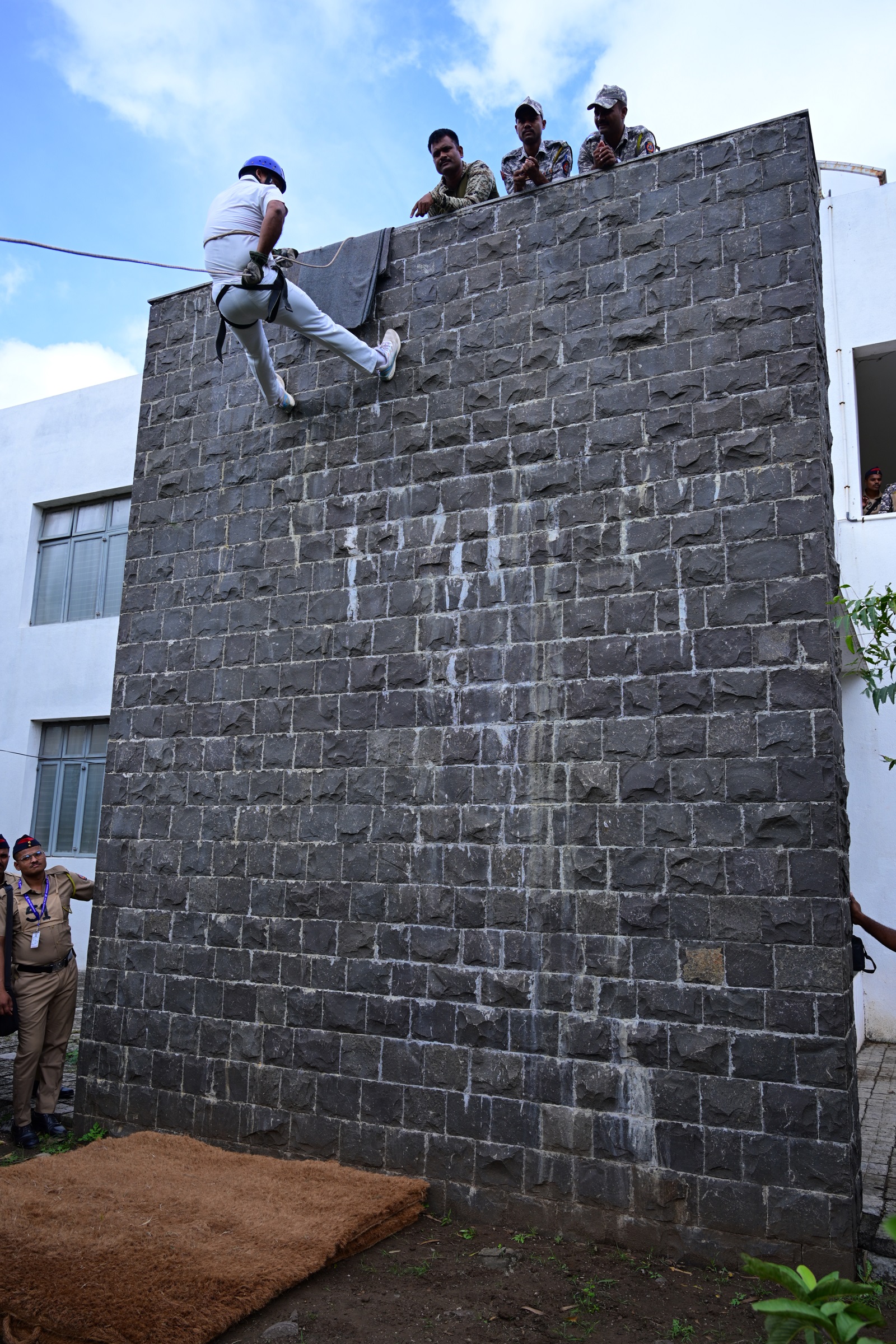 पोलीस प्रशिक्षण केंद्र नानवीज दौंड येथे रॅपलिंग या विषयावर मार्गदर्शन करण्यात आले.